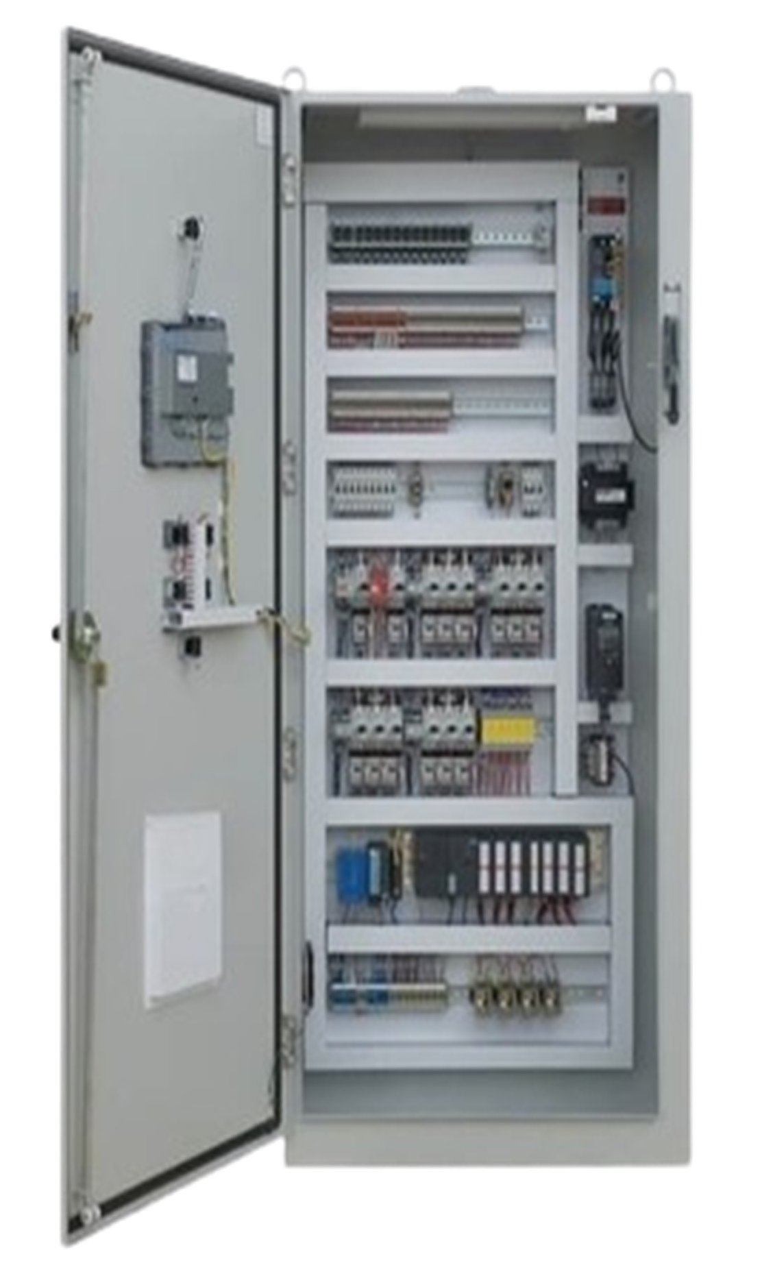 A PLC (Programmable Logic Controller) Panel is an industrial control system that integrates a PLC with various electrical components to control and automate processes and machinery in a factory or industrial environment. The panel typically includes the PLC unit, input/output (I/O) modules, power supply, control components like relays and switches, and protection devices such as circuit breakers or fuses.PLC panels are used in applications ranging from manufacturing and processing plants to automated assembly lines, where precise control and monitoring of processes are necessary.